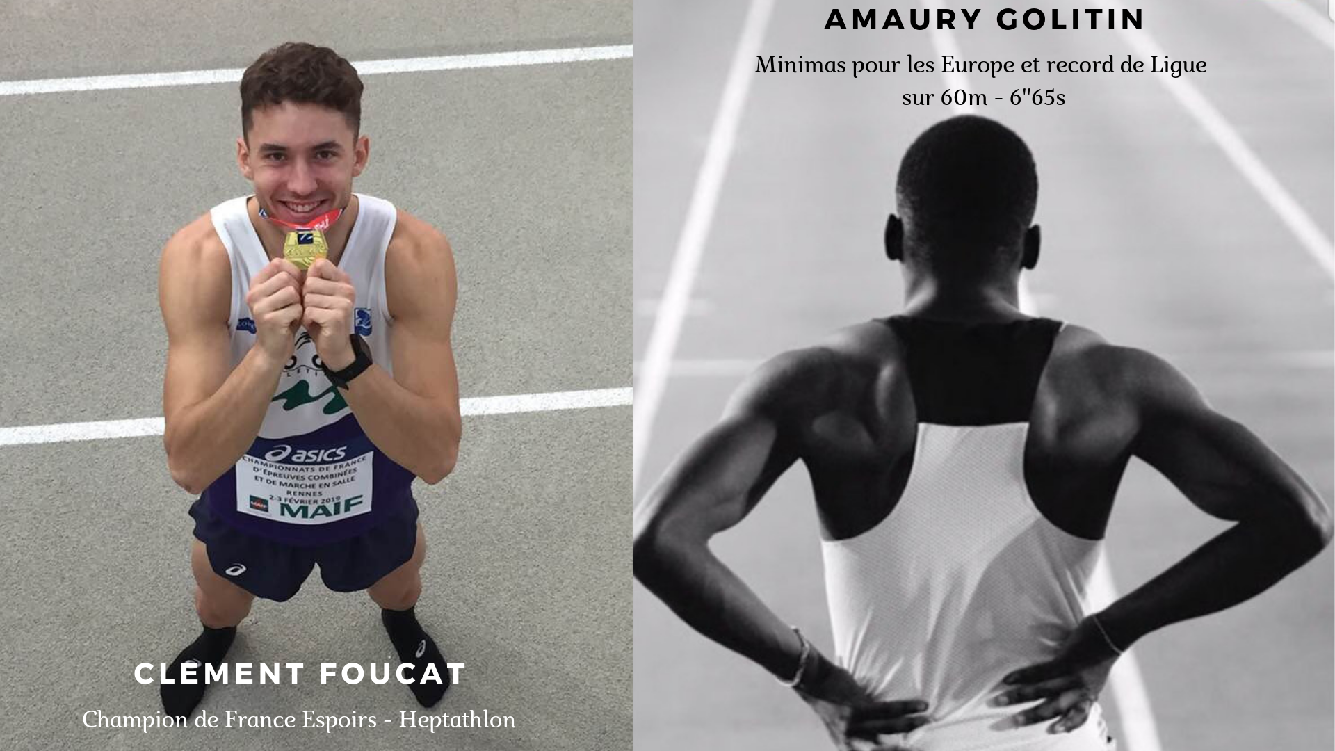 Clément Foucat vient de prendre le titre de Champion de France sur Heptathlon avec 5 349 points, tandis qu’Amaury Golitin réalise les minimas pour les championnats d’Europe et prend le nouveau record de Ligue sur 60m en 6.65s.
