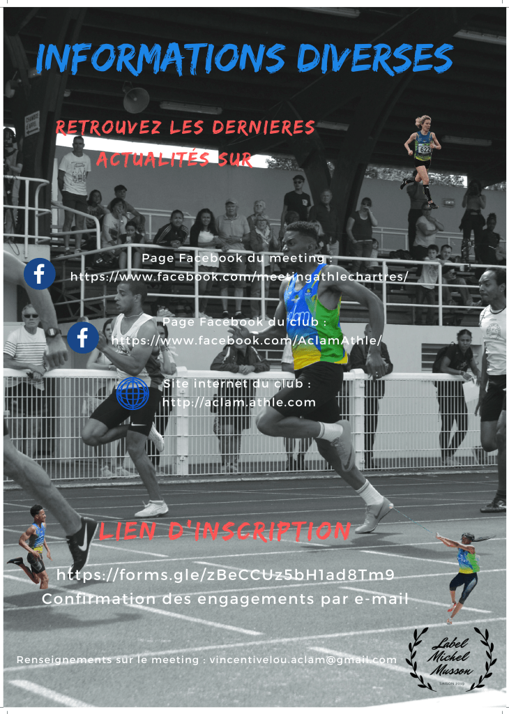 Autre meeting ayant lieu ce week-end, le meeting de Chartres. N’hésitez pas à aller sur la page Facebook dédiée à leur meeting où ils y présentent les athlètes inscrits. Ca risque de sauter haut et loin ce dimanche.