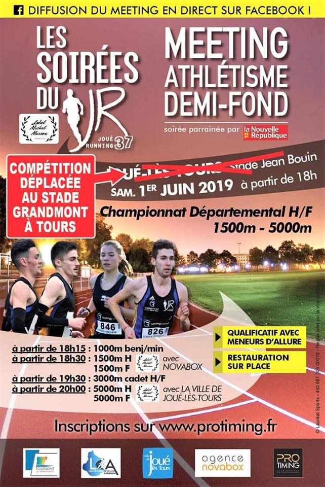 Le meeting du JR 37 dédié au demi-fond aura lieu au stade de Grandmont à Tours ce samedi. Le meeting aura bien évidemment des meneurs d’allure et sera diffusé en live sur Facebook.