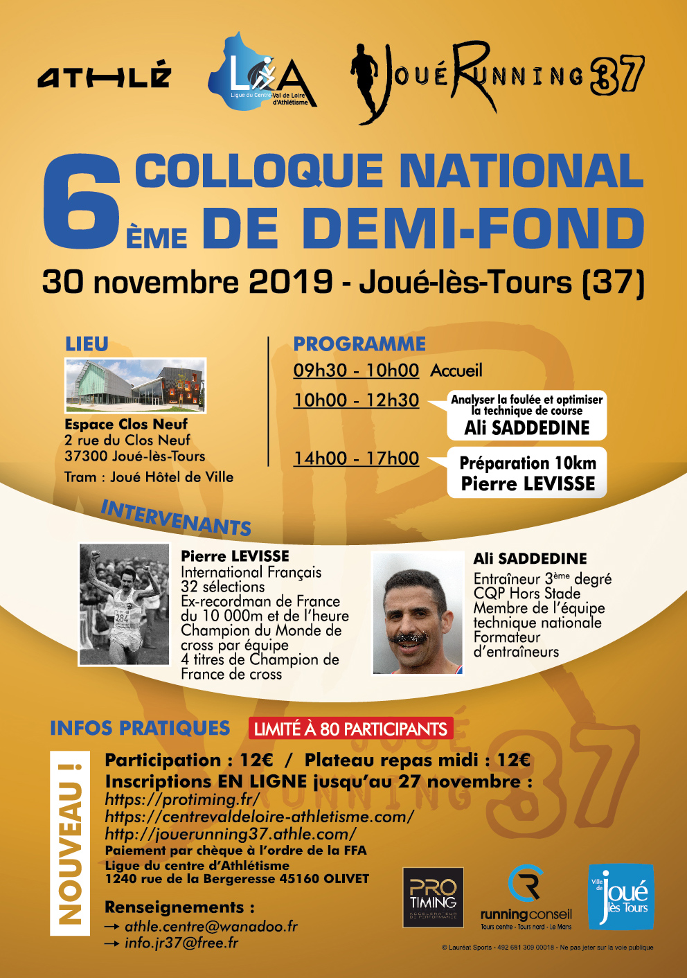 Le 30 novembre prochain aura lieu le 6ème colloque national de demi-fond à l’espace Clos Neuf de Joué-lès-Tours.