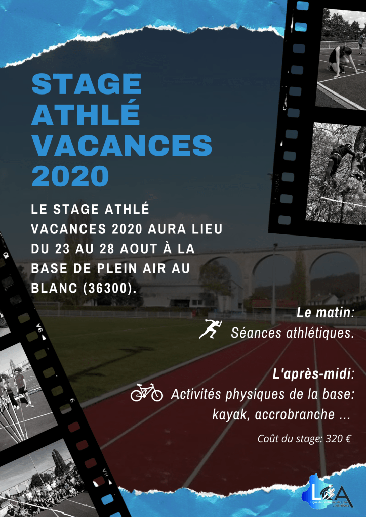 Les inscriptions pour le stage de Ligue athlé vacances au Blanc (36) sont ouvertes. Ce stage aura lieu du 23 au 28 aout à la base de pleine air du Blanc (36).