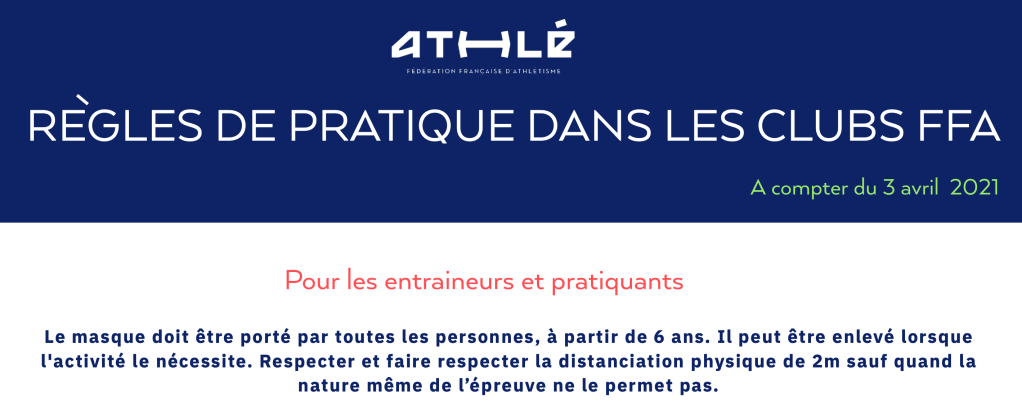 REGLES DE PRATIQUE DANS LES CLUBS FFA