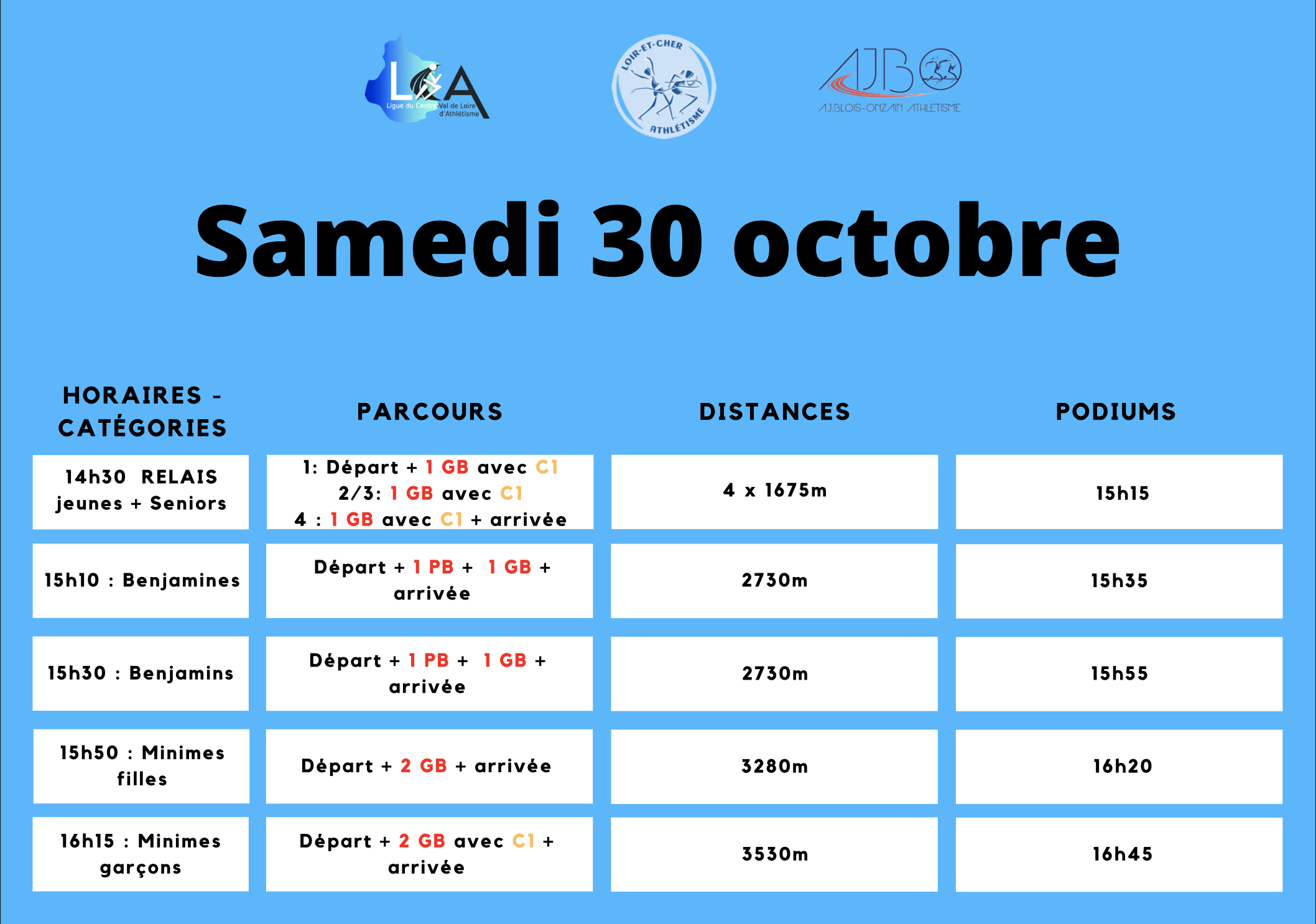 Le 30 octobre : Relais jeunes, relais seniors et cross Benjamins et Minimes.