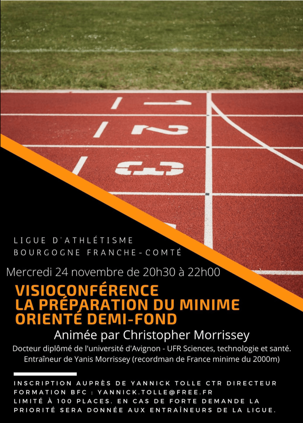 « Afin de proposer une offre de formation continue sur différentes thématiques, la Ligue d’athlétisme de Bourgogne Franche Comté par l’intermédiaire de son responsable »formation », Yannick Tolle met en place un cycle de Conférences en visio.