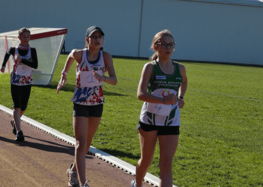 Concernant les épreuves de marche, nous retiendrons les 15min24s00 de Gwladys BRUSSEAU (ECO-CJF) sur le 3000m et les 12min40s00 de Leina AZZOUZI GOUET (SLAC) sur le 2000m BEF.