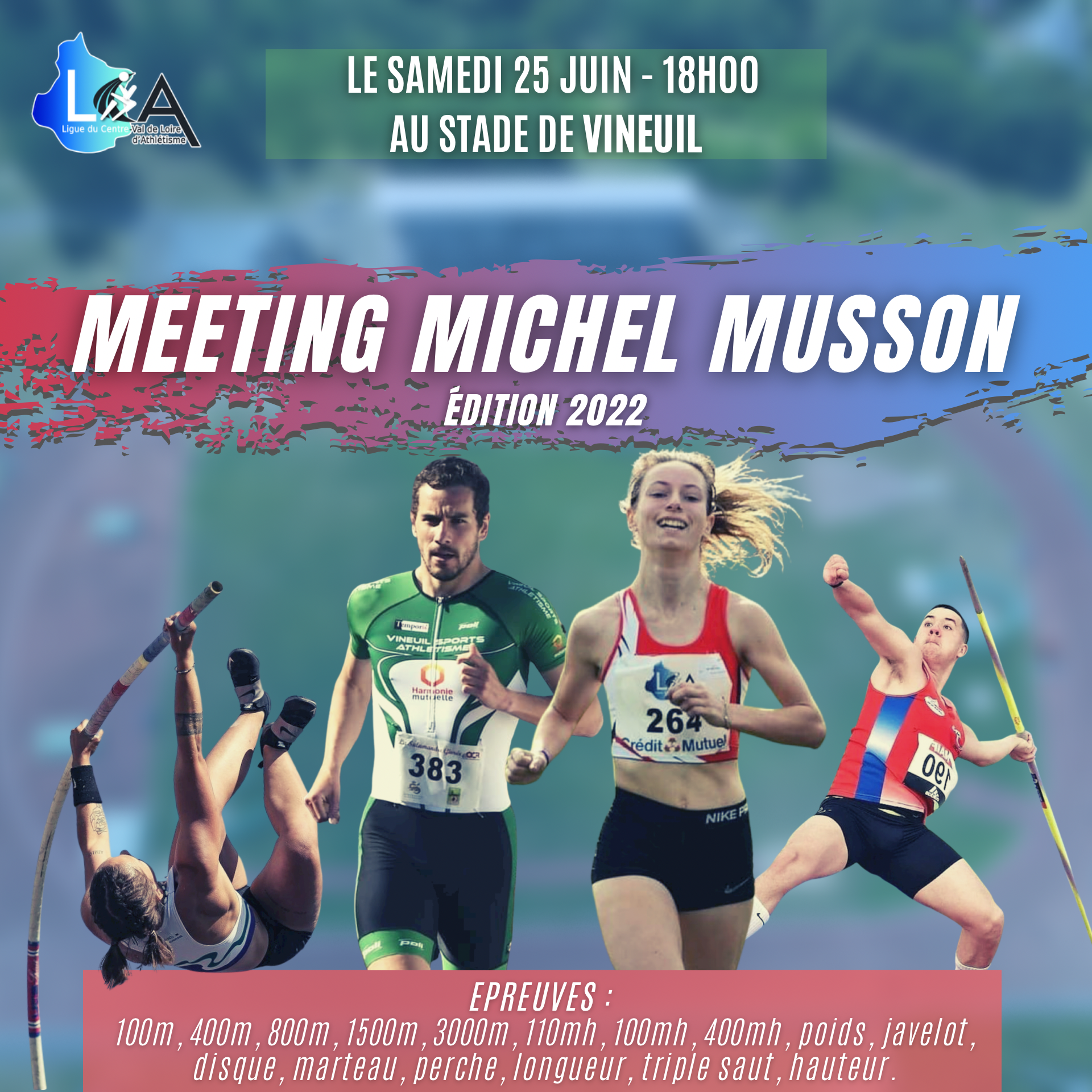 Attention : Le meeting Michel MUSSON est déplacé au samedi 25 juin 18h au stade de Vineuil.