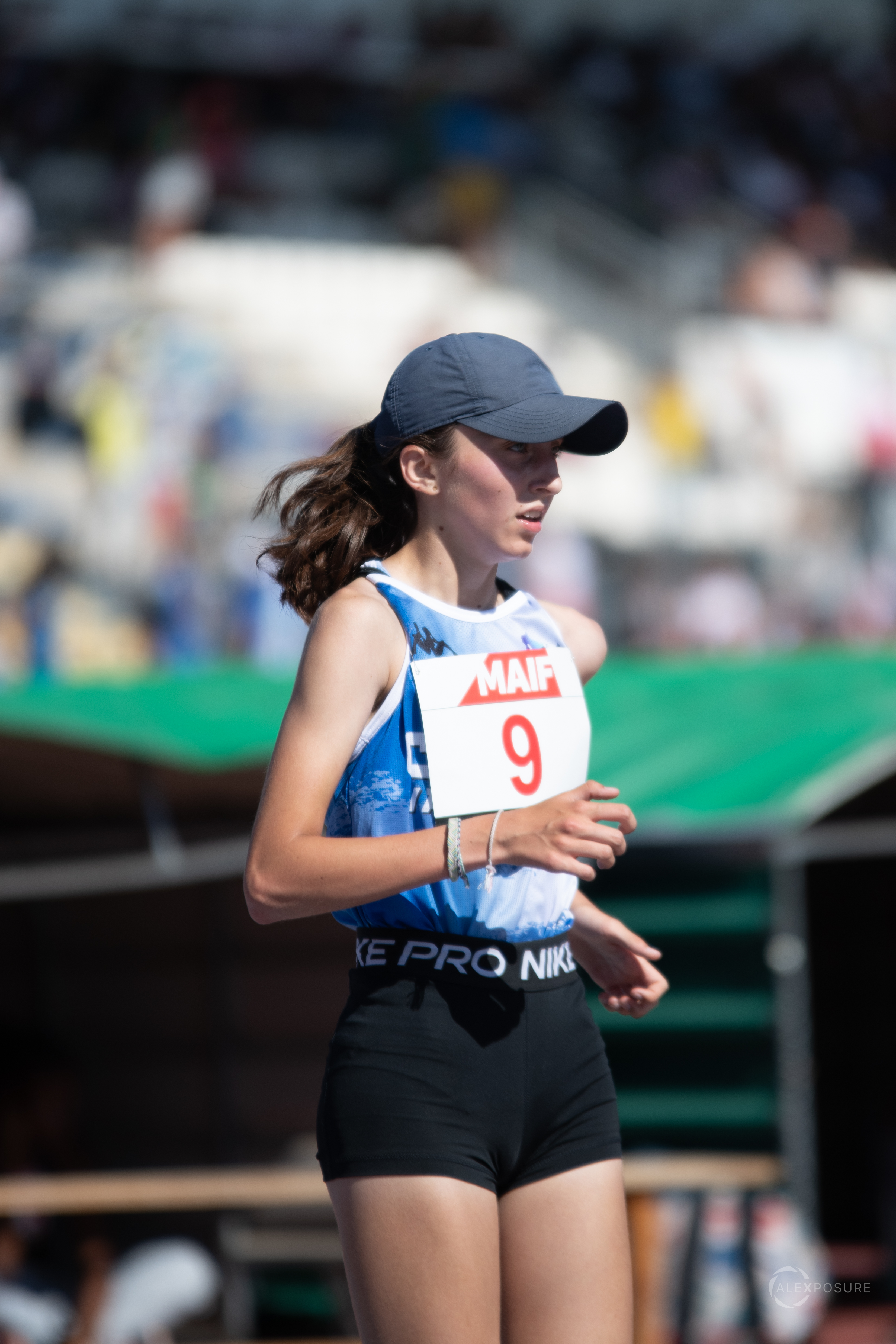 Les courses de demi-fond laissèrent place ensuite aux épreuves du 3000 m marche dans lesquelles nos représentants avaient des atouts à faire valoir en commençant par Lison CHARPENTIER (AC Romorantin), seconde au bilan national et qui devait faire face à la numéro 1 française originaire des Pays de la Loire. Déterminée à prendre sa revanche après sa confrontation directe contre cette même adversaire lors du match interligues en salle à Rennes. Lison a su se montrer très patiente avant de revenir sur son adversaire directe. L’athlète des Pays de la Loire était loin de se montrer vaincue en revenant à hauteur de Lison lors de l’ultime 100 m pour offrir un mano à mano de toute beauté. Le suspens fut de courte durée puisque notre romorantinaise a coupé court à cette confrontation en puisant dans ses ressources et mettre une impressionnante accélération s’adjugeant la victoire finale dans un temps de 15min09s43 soit sa seconde meilleure performance de la saison.