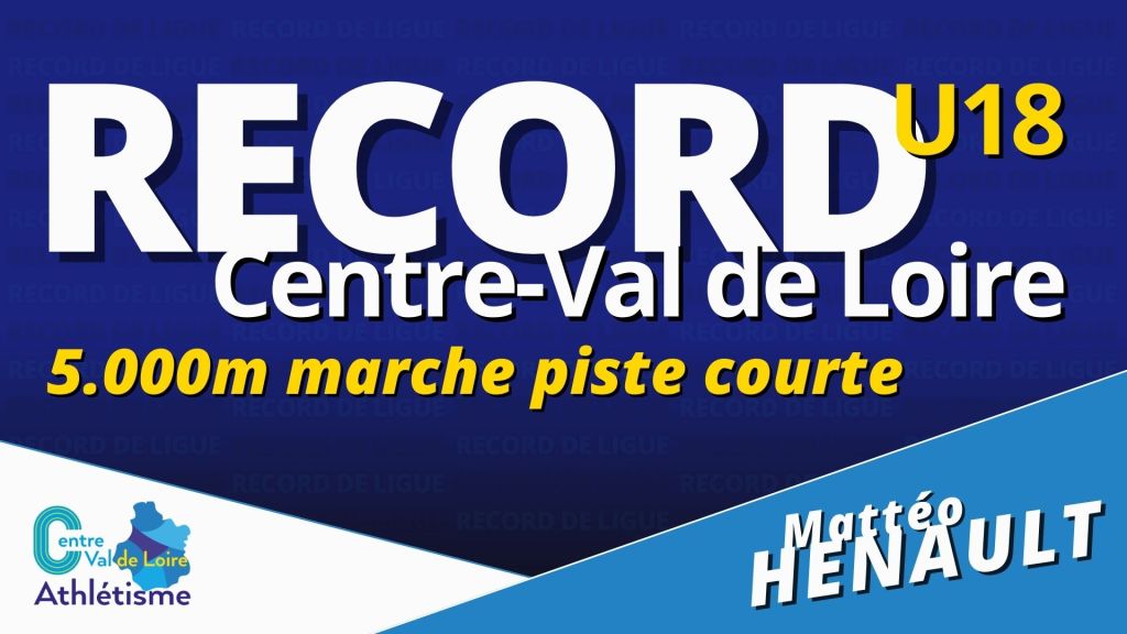 Le jour même de ses 17 ans, ce dimanche 4 janvier, Mattéo HÉNAULT s’est offert un beau cadeau ! Déjà détenteur de la meilleure marque régionale en extérieur, le marcheur du Vineuil Sports s’empare cette fois du record de ligue U18 du 5.000m marche en salle (piste courte) lors d’un meeting à Val de Reuil.
