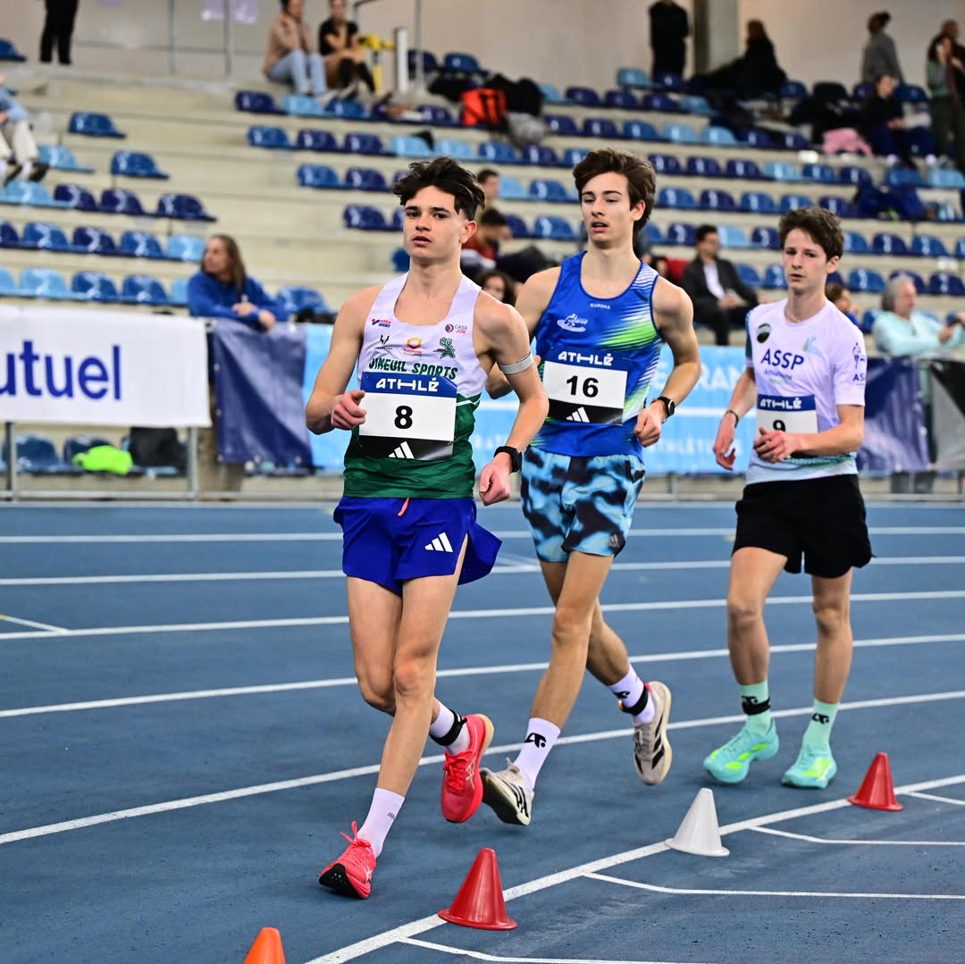 Sur le 5.000m marche U18, Mattéo Hénault (Vineuil SA) a livré une course pleine d’audace. Rapidement installé dans le groupe de tête, il n’a pas hésité à attaquer dans les derniers kilomètres face au grand favori, Gabin Vanhille, recordman de France de la distance. S’il doit finalement s’incliner, le Vinolien décroche une superbe médaille d’argent, accompagnée d’un record personnel et record de ligue en 21’52’’97.