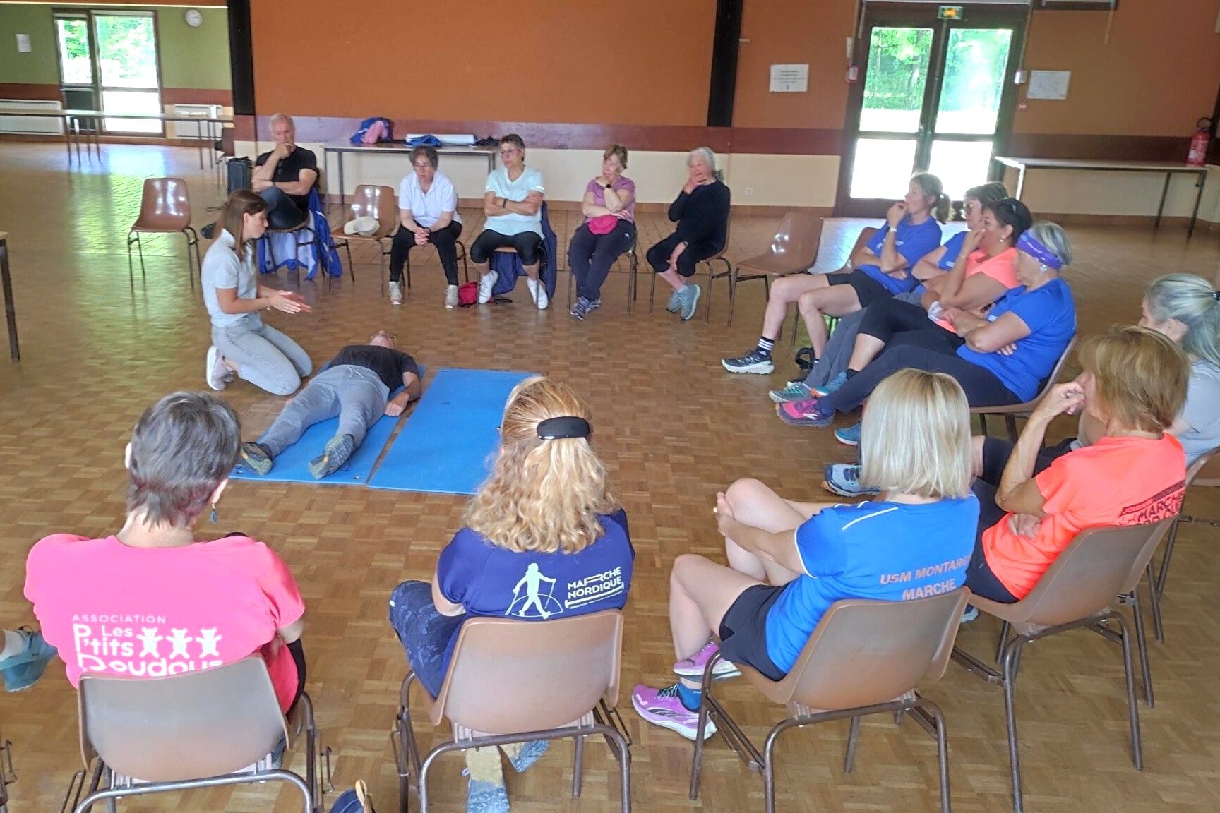 L’après-midi s’est poursuivie avec une intervention appréciée d’une sapeur-pompier, venue sensibiliser les participants aux gestes de secourisme. Un moment enrichissant et utile pour tous. En parallèle, une séance de NordicFit a permis de prolonger l’activité physique dans une ambiance dynamique.