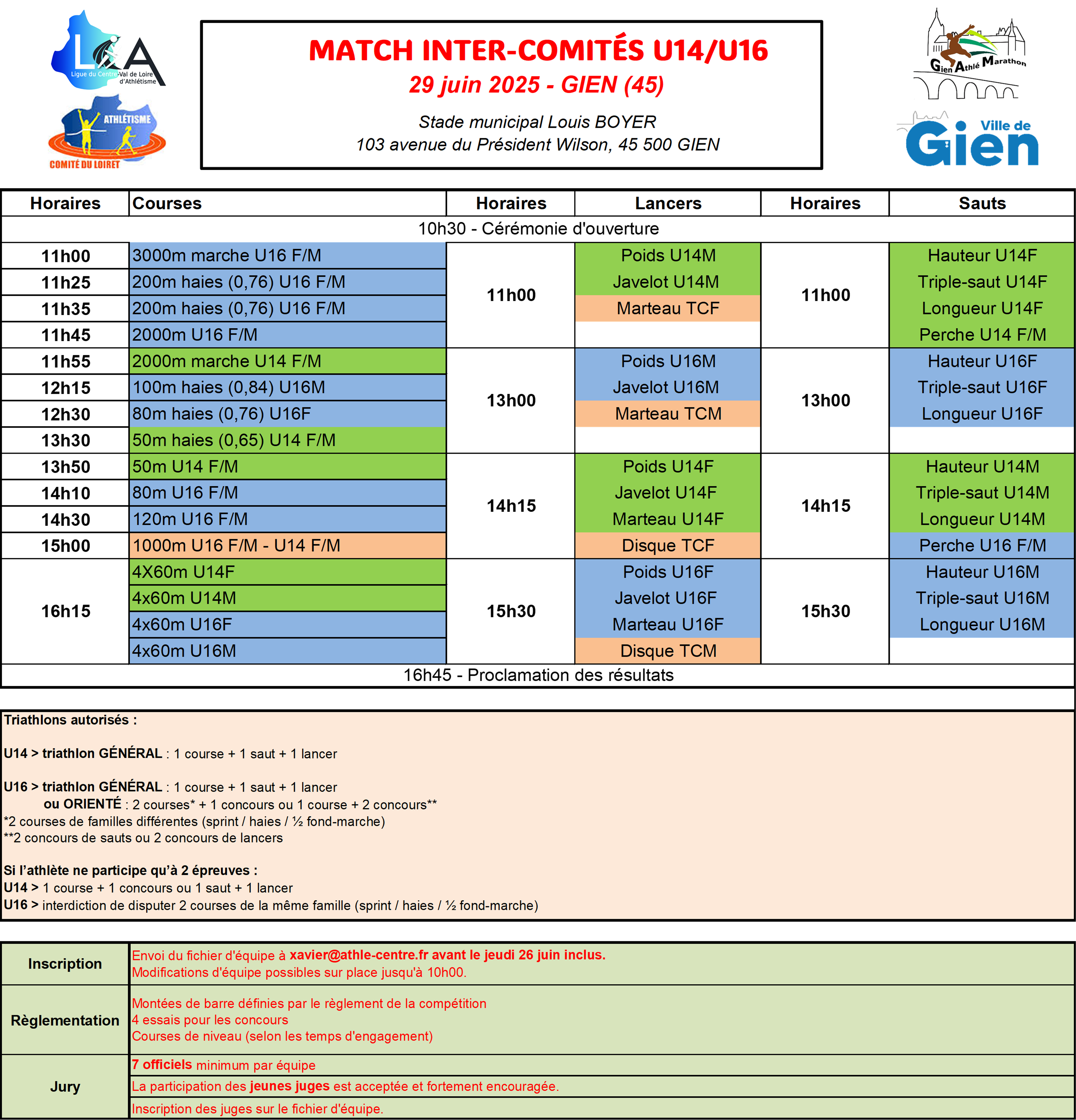 Le fichier d’équipe de chaque comité départemental est à envoyer par mail à xavier@athle-centre.fr., avant le jeudi 26 juin inclus.