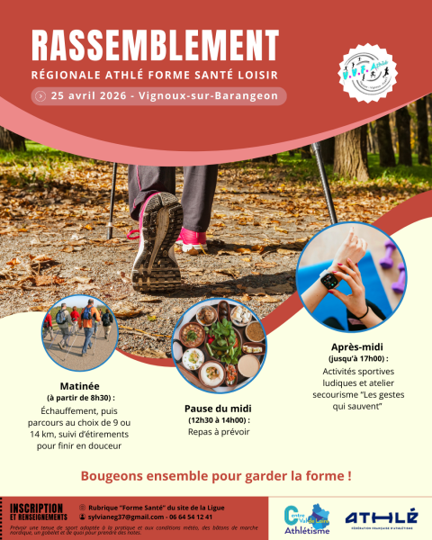 La Ligue Centre‑Val de Loire vous invite à son rassemblement régional de Marche Nordique, une journée sportive et conviviale ouverte à tous les niveaux. Que vous soyez débutant ou pratiquant confirmé, venez profiter d’un cadre naturel et adapté pour développer votre technique, votre endurance et partager un moment de convivialité avec d’autres passionnés.